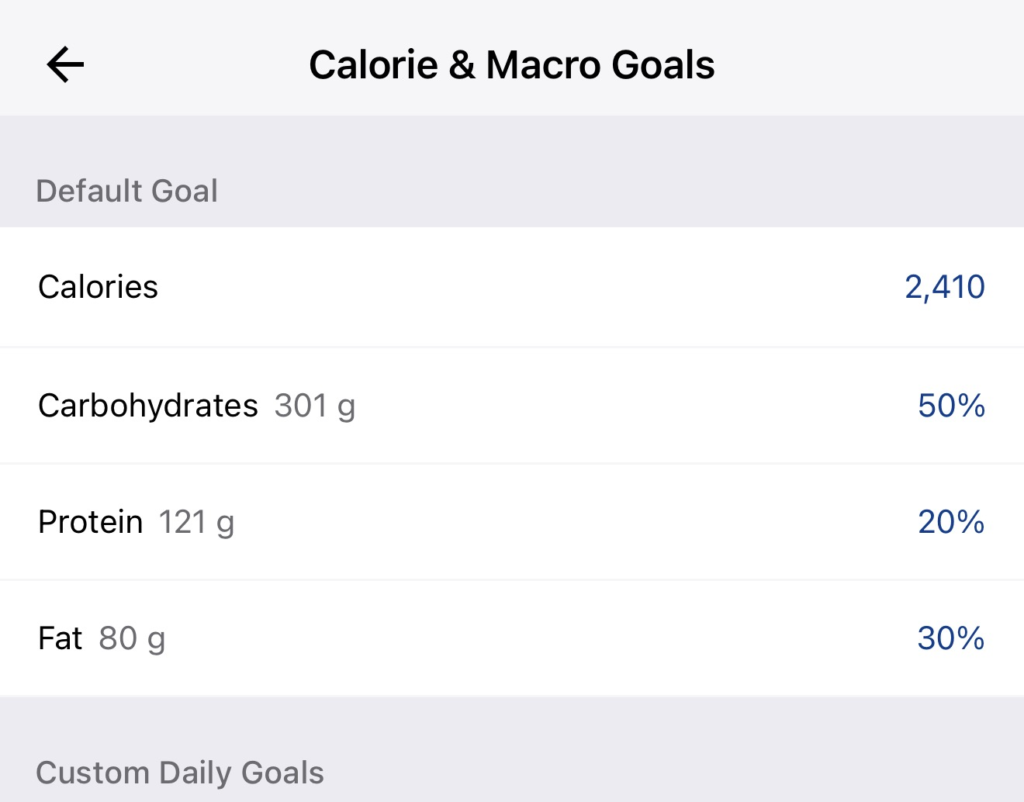 - Set your Calories: Tap on “Calories” and enter the daily total provided by your coach.